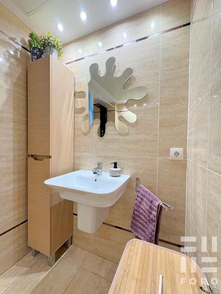 Al espacio de salón-comedor se une una práctica cocina abierta con bancada, pensada para cocinar compartiendo, al mismo tiempo, buenos momentos. Un distribuidor con armario empotrado pensado para el lavado, nos da paso a la zona de noche, donde encontramos por un lado, un baño completo con bañera y por otro, una amplia habitación doble de 4x2,5m a la que accedemos a través de un vestidor. El ático está equipado con sistema de aire acondicionado frío / calor por conductos para garantizar el confort térmico.