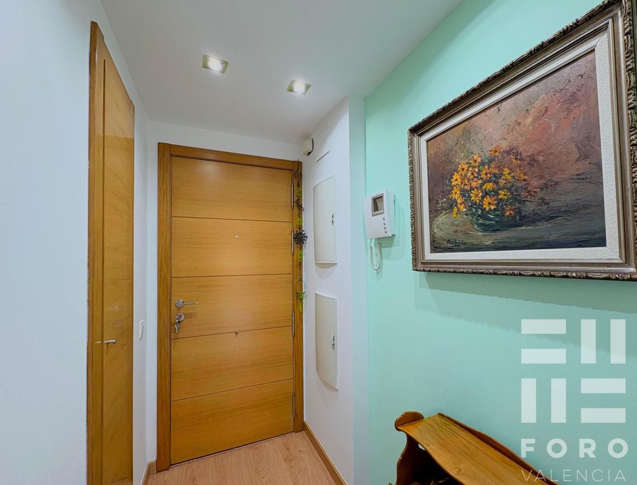 En la vivienda nos recibe un bonito hall equipado con armario empotrado. Ya desde este punto comprobamos la gran luminosidad gracias a que la zona de día se abre a una bonita terraza de 12m2, el cerramiento de la terraza además es de última generación y combinado con los estores deslizantes, permite cierre total, apertura parcial o apertura total de la terraza, para disfrutarla cada día según el clima de cada momento.