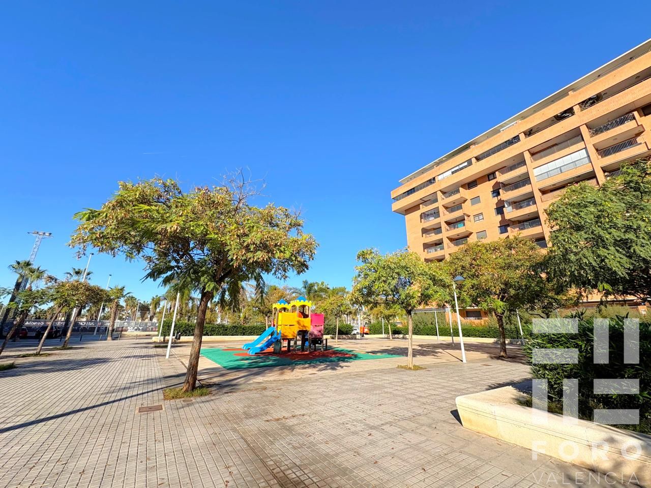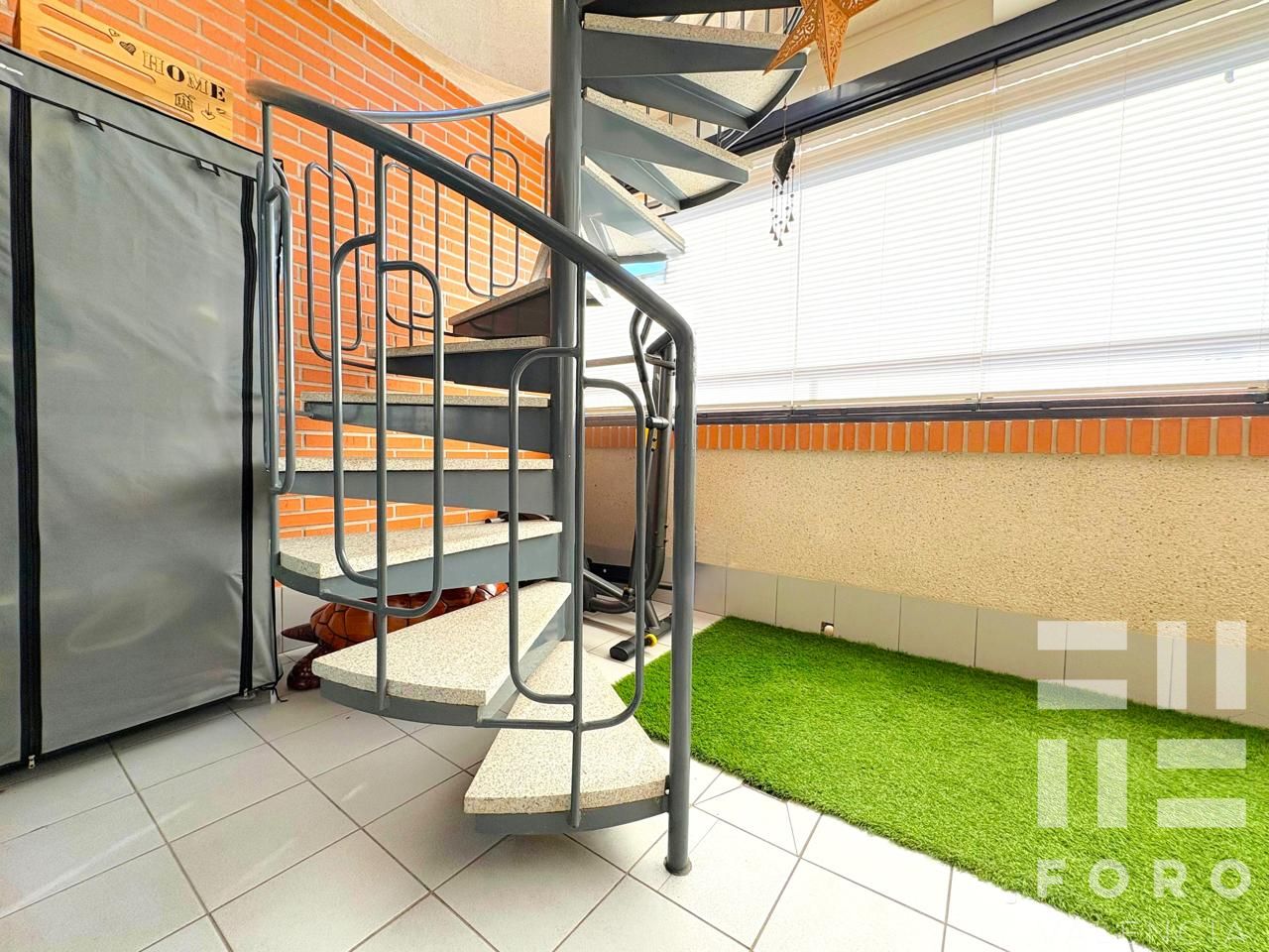 El ático forma parte de una estupenda urbanización construida en 2013 con piscina, jardín infantil, conserje y vigilante nocturno. Destaca la calidad de los espacios comunes y su estado de conservación.