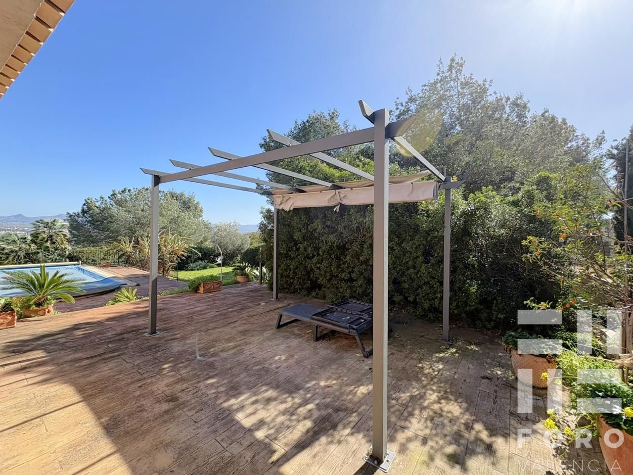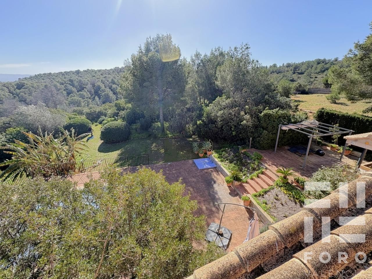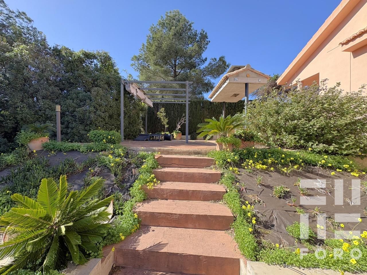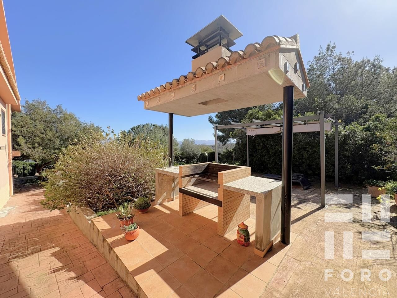 Its established gardens and various green spaces for outdoor living are truly impressive and a real privilege. The plot also includes a 8x4m swimming pool, a paella cooking area, and a porch.